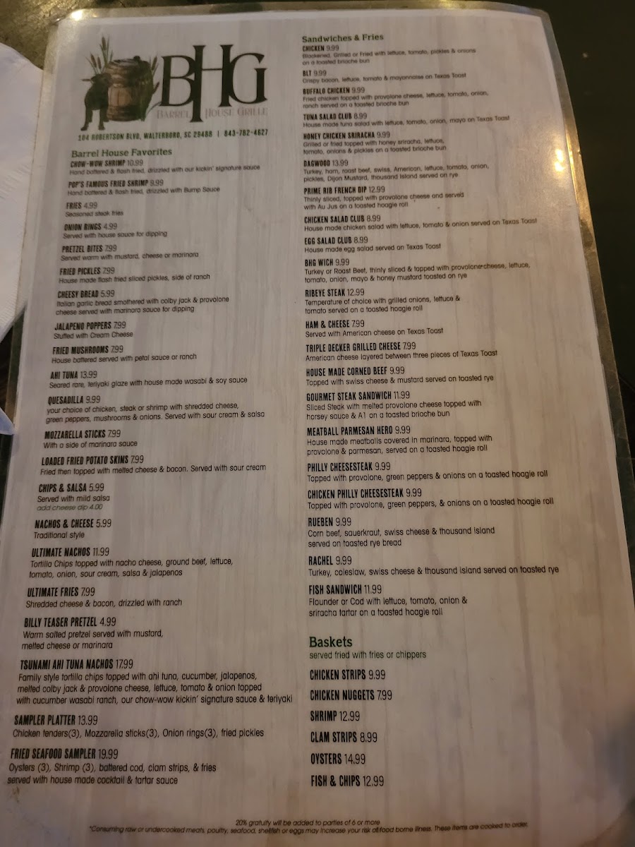 Welcome to Barrel House Grille, a hidden gem located at 104 Robertson Blvd in Walterboro, SC. This unpretentious venue may have unassuming signage, but don’t let that fool you; the flavors emerging from the kitchen are nothing short of fantastic.